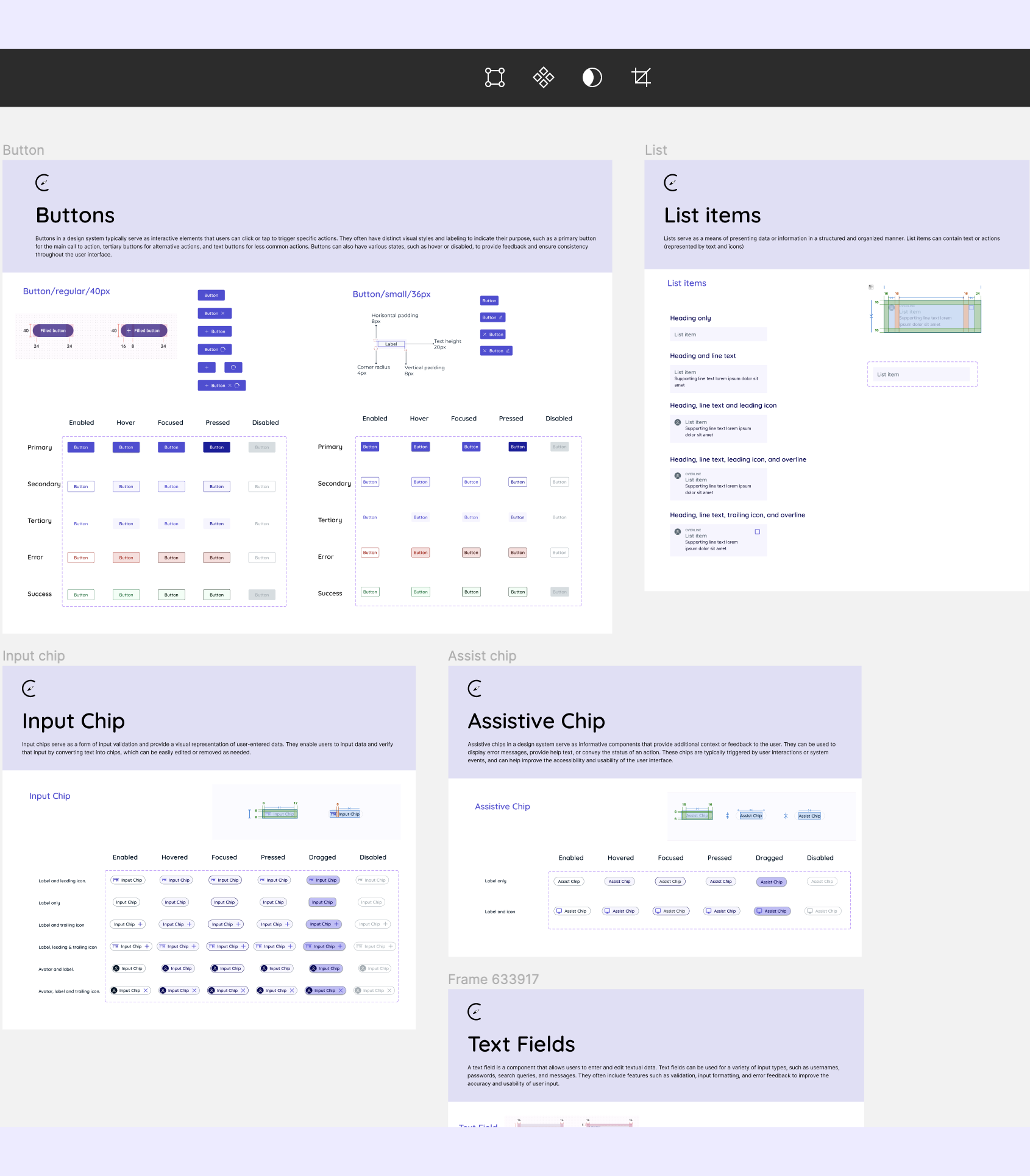 The goal of the design system was to drive greater efficiency and cohesion by establishing a system that document's the platform's visual and experience design principles, and offers a library of reusable elements.