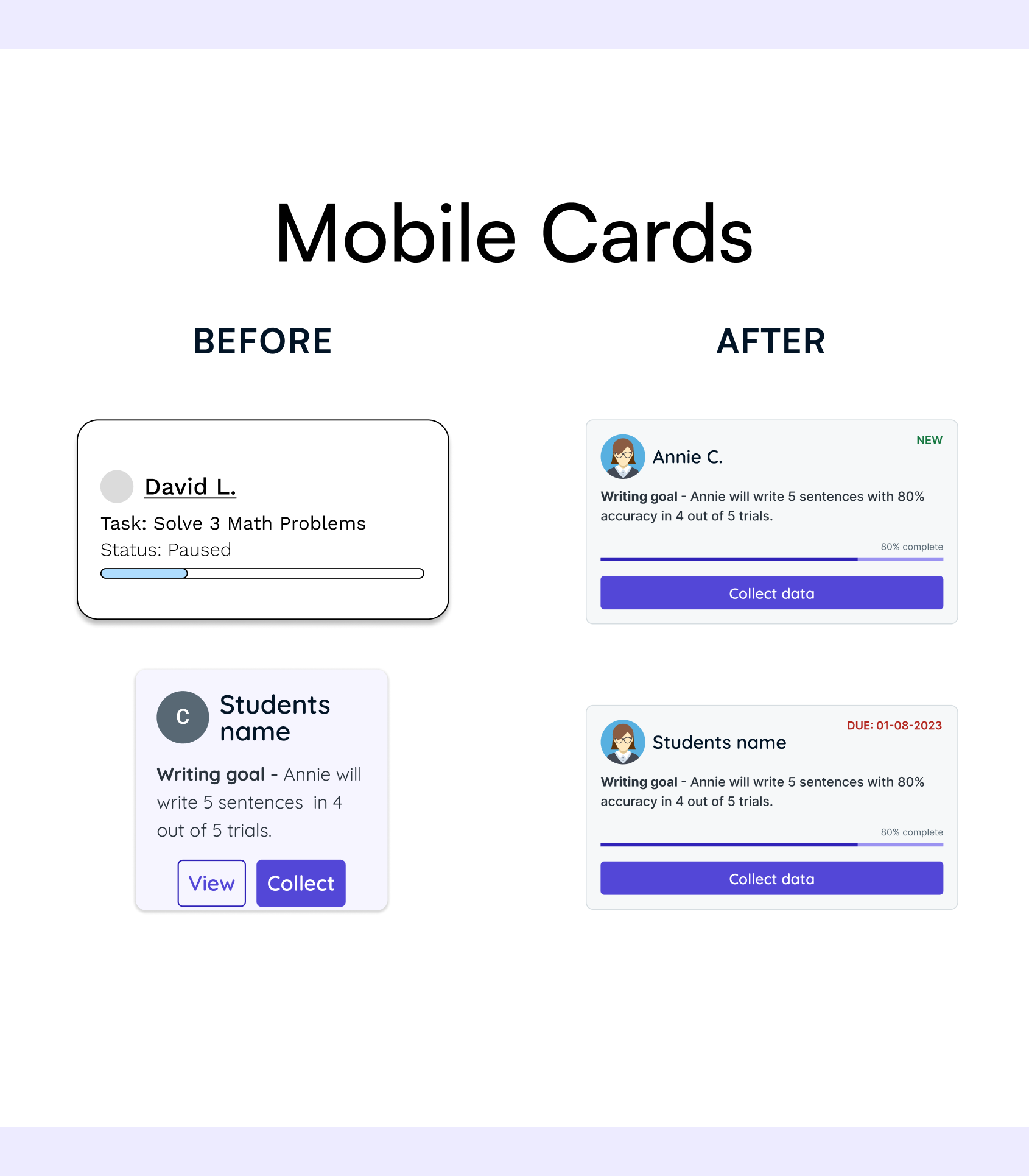 Our design patterns, such as cards, modals, and forms, allow our experience teams to maintain visual and functional consistency across different flows. They serve as starting points for essential teacher and assistant flows, such as student goal creation.