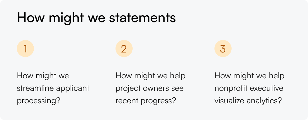 I conducted a second round of interviews to understand the kinds of insights project owners need to make executive decisions. During my conversations with nonprofit executives it became clear that a successful implementation of on Analytics tab should enable project owners to: