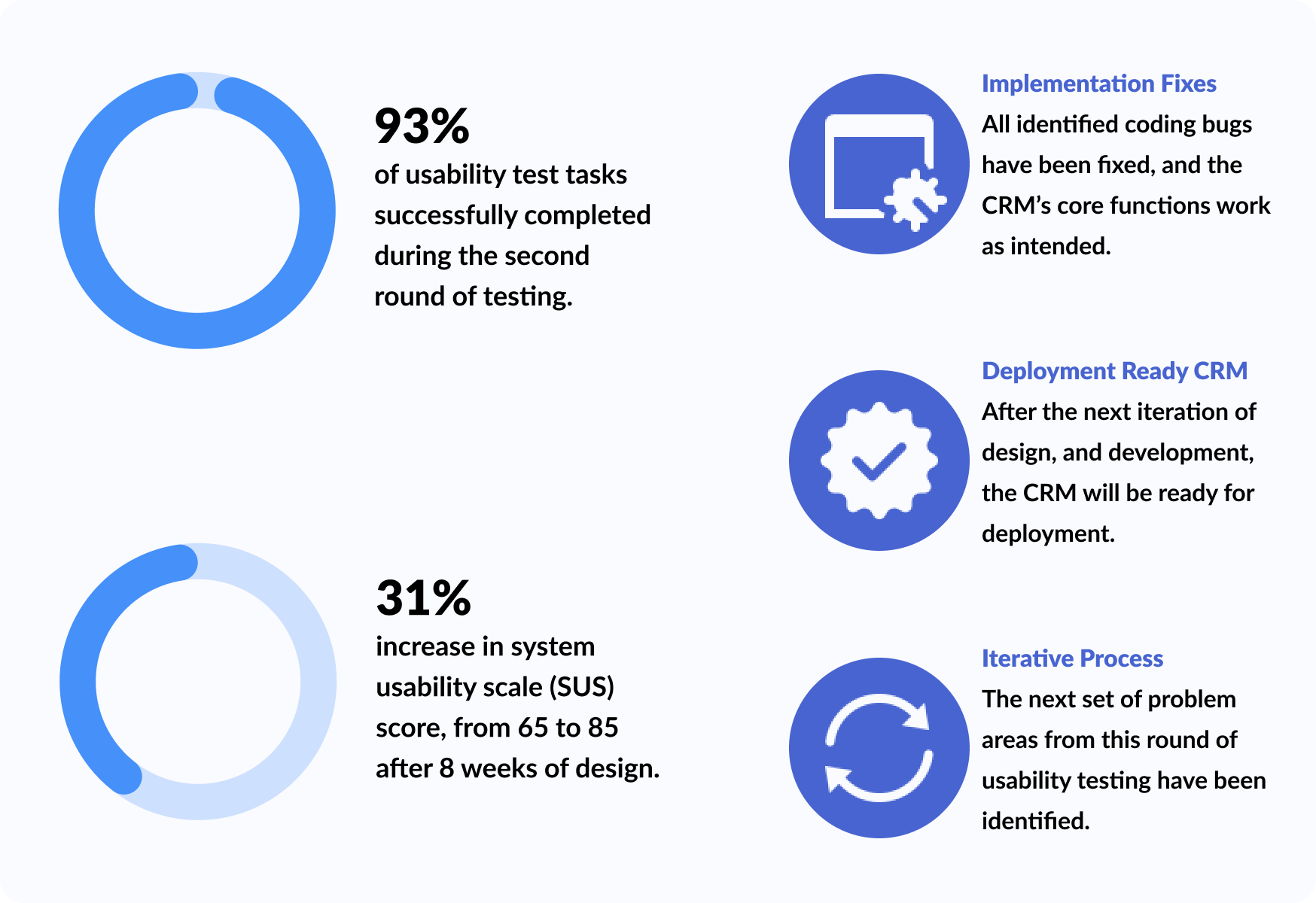 ✅ The CRM now adheres to recognized usability standards, and the system's key features are fully functional. Consultants can navigate the interface without worrying about usability and functional issues interrupting their work.